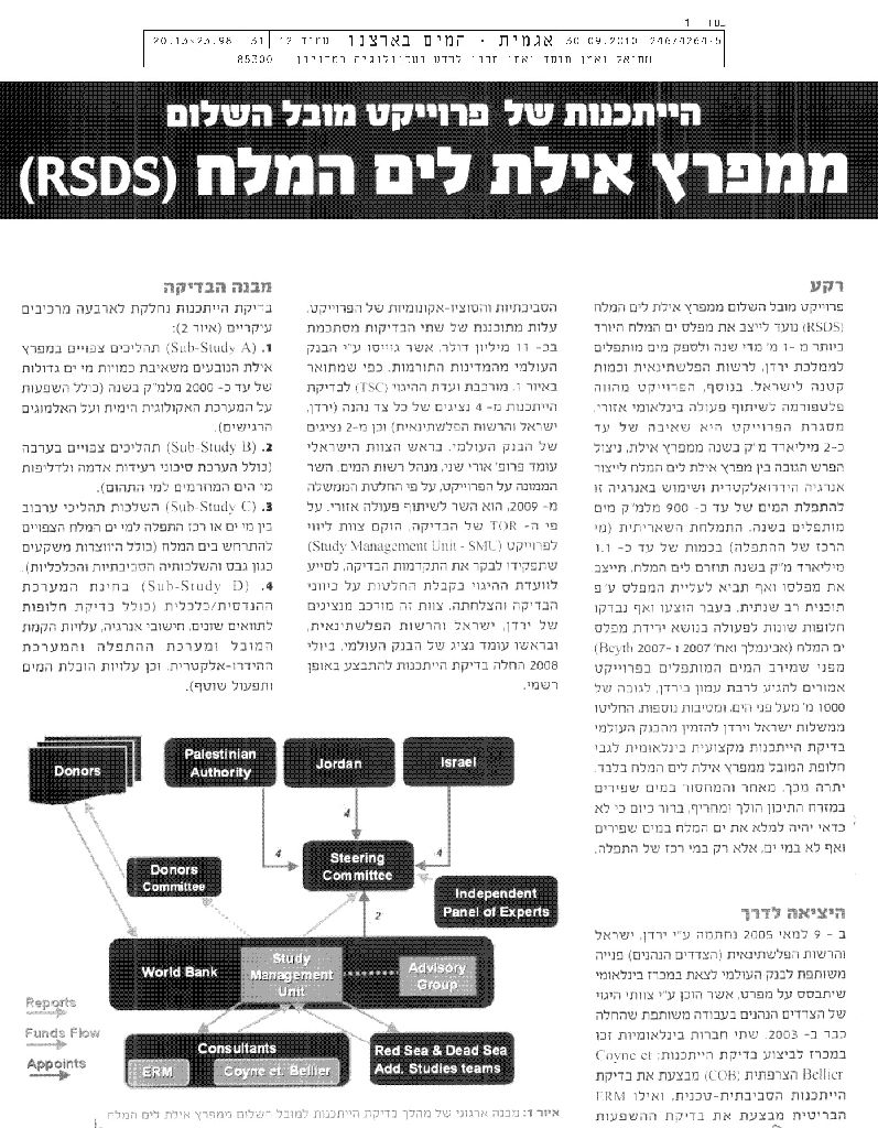 ההתכנות של פרוייקט מובל השלום ממפרץ אילת לים המלח