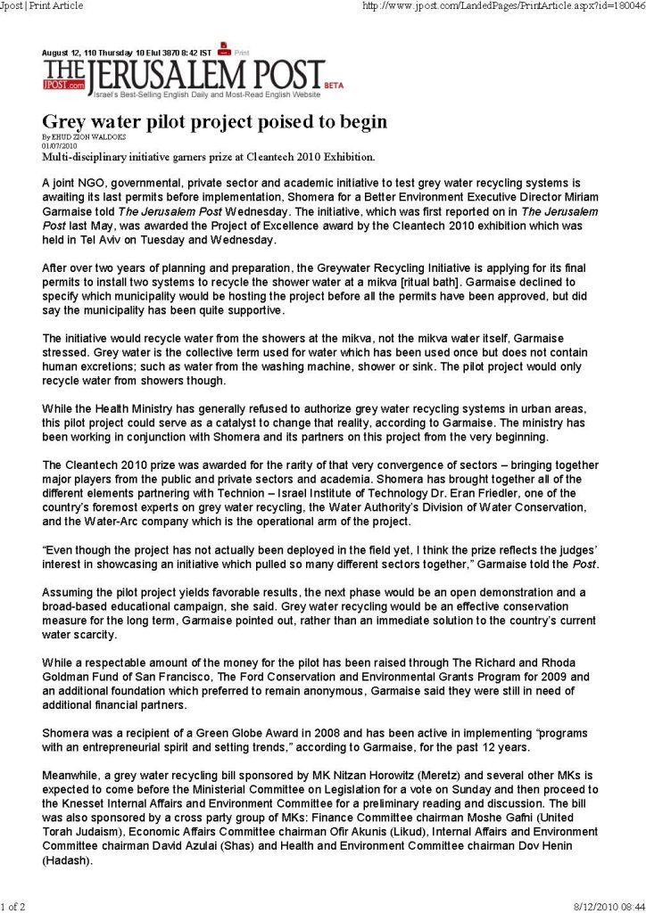 פרויקט הפיילוט של מים אפורים צפוי להתחיל