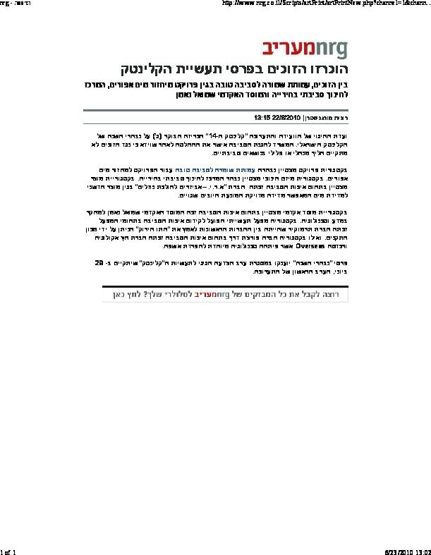 הוכרזו הזוכים בפרסי תעשיית הקלינטק