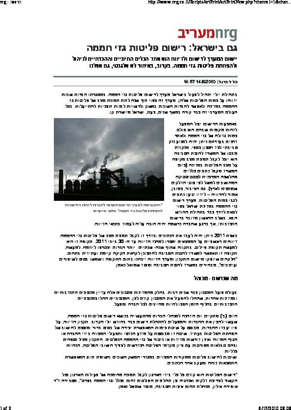 גם בישראל: רישום פליטות גזי חממה