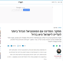מחקר: המדינה עם הפוטנציאל הגדול ביותר לעלייה לישראל היא ברזיל