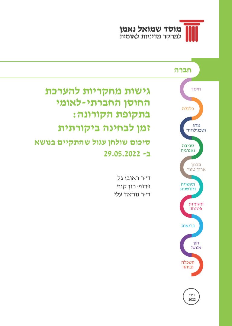 באפריל 2022 התקיים במוסד שמואל נאמן שולחן עגול שעסק בניתוח ביקורתי של מחקרים בנושא חוסן לאומי-חברתי בתקופת מגיפת הקורונה.