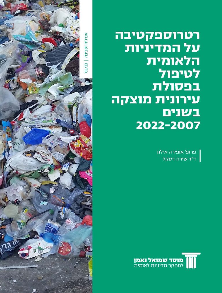 למרות השינויים הרגולטוריים שהוביל המשרד, שיעורי ההטמנה בישראל נותרו כמעט ללא שינוי ומשנת 2003 עד היום קרוב ל-80% מהפסולת העירונית המוצקה בישראל מוטמנת בקרקע.עבודה זו בחנה את המדיניות הלאומית לטיפול בפסולת עירונית מוצקה בשנים 2007 – 2022, השינויים הרגולטוריים שנגזרו ממנה, התוכניות האסטרטגיות שגיבש המשרד, היעדים שהציב והתוצאות בפועל בשטח.