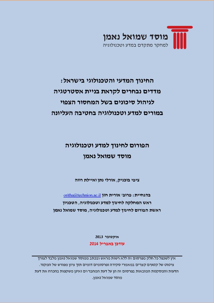 החינוך המדעי והטכנולוגי בישראל: מדדים נבחרים לקראת בניית אסטרטגיה לניהול סיכונים בשל המחסור הצפוי במורים למדע וטכנולוגיה בחטיבה העליונה